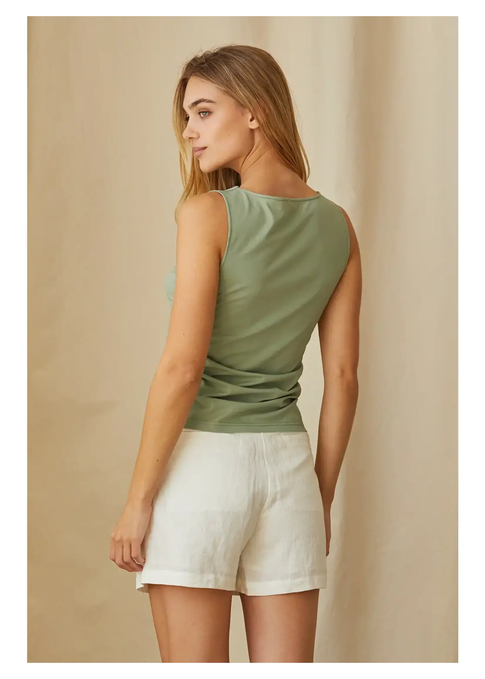 Product Features: Cowl neckline, Shirred at the sides, Sleeveless, Fitted Bodice